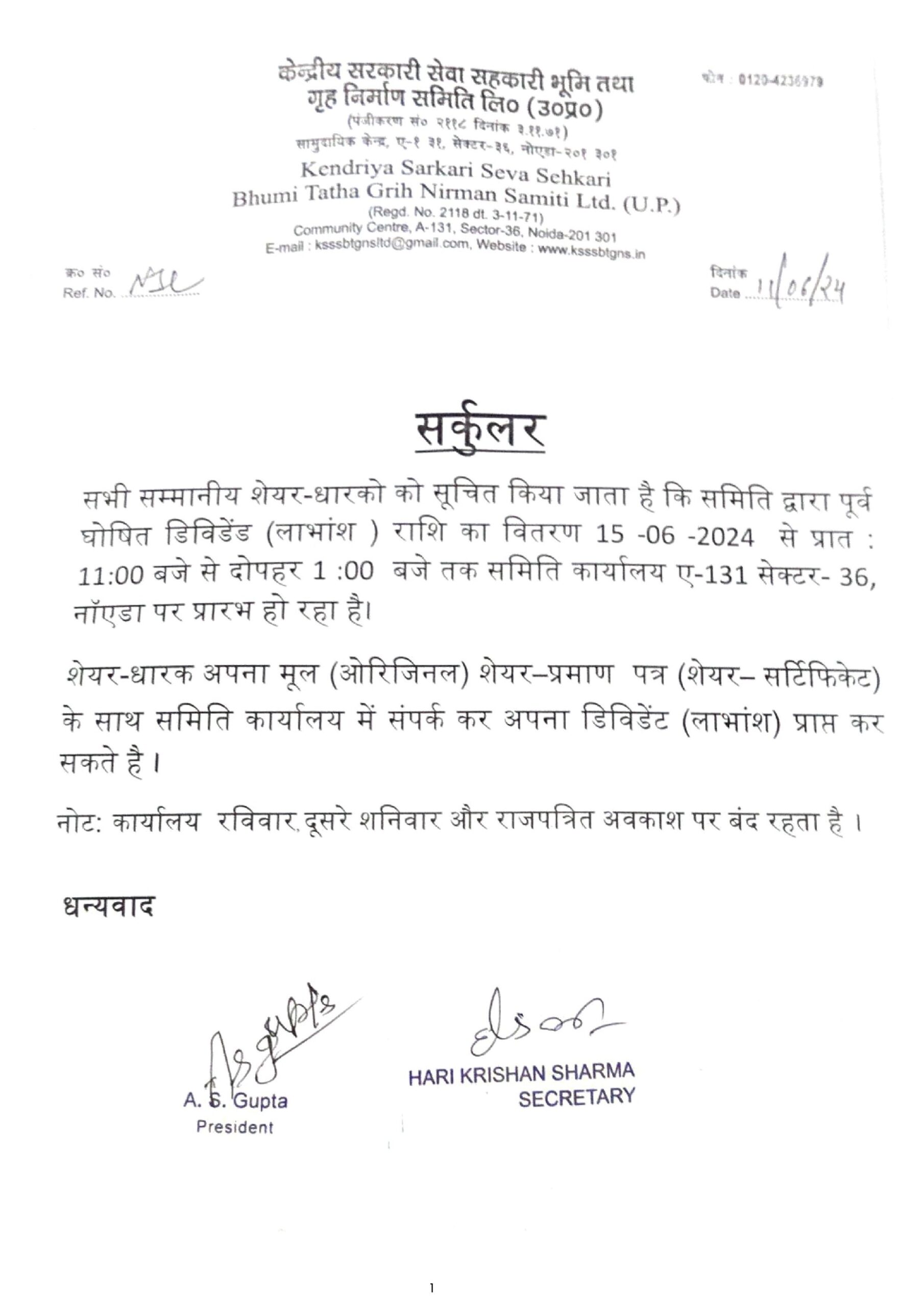 Dividend Circular